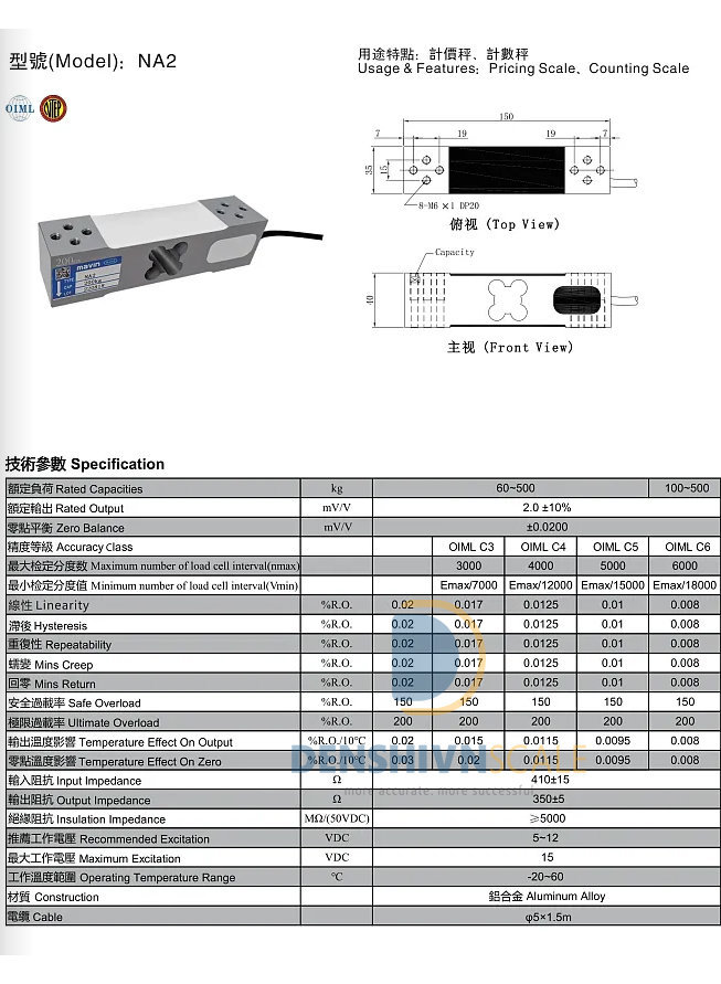 Ảnh hưởng nhiệt độ đến tín hiệu xuất ra | 0.002% R.O./oC |