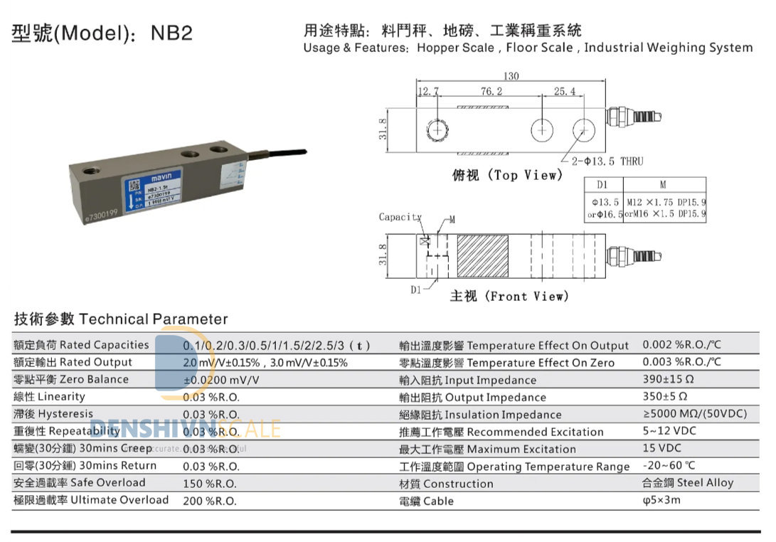 | Điện trở | 2.0mV/V ±0.15%, 3.0mV/V ±0.15%, |